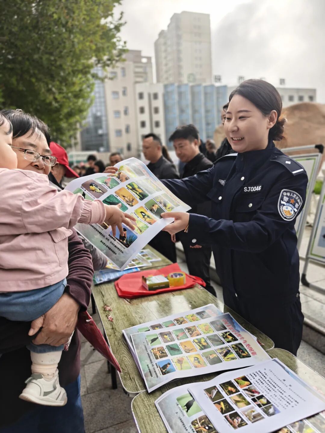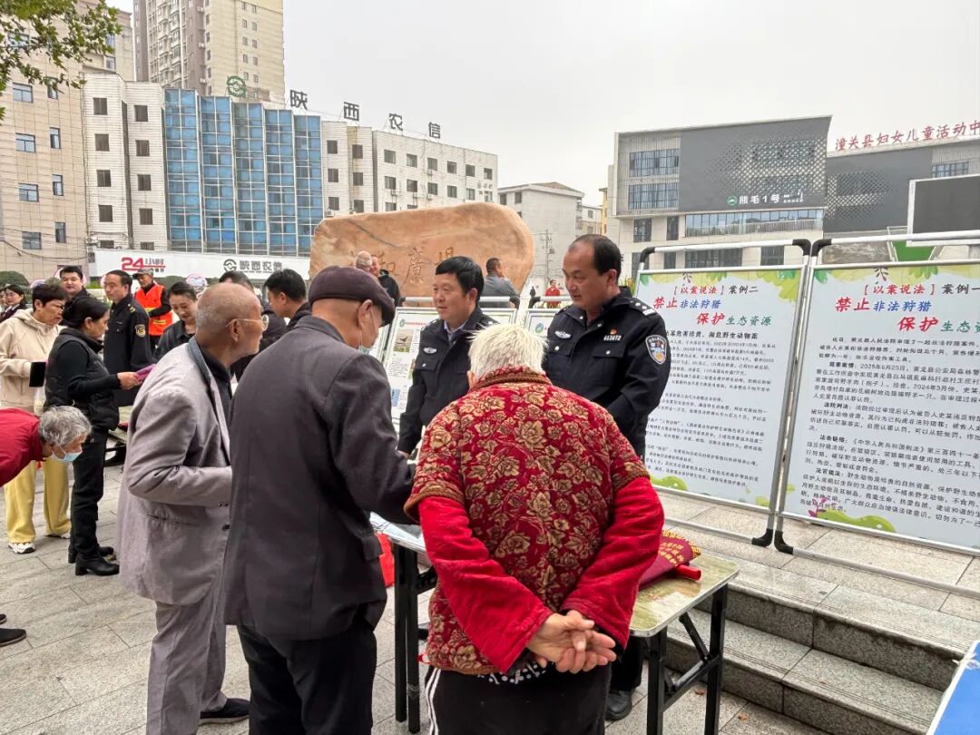 10月14日,潼关县公安局会同法院、检察院、林业局、市管局、农业农村局等在祥和广场联合开展“打击整治野生鸟类”保护野生动物宣传活动,副县长、公安局长雷建利到场指导。