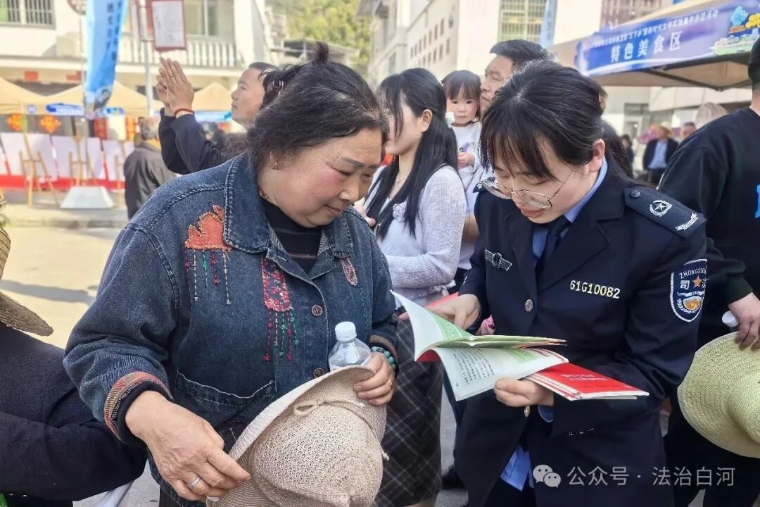4月1日,2026年安康市文化科技卫生“三下乡”暨新时代文明实践集中示范活动在茅坪镇枣树社区隆重举行。白河县司法局借此契机,组建由法援、公证、律师等骨干力量组成的普法志愿小分队,将法治服务与“三下乡”惠民举措深度融合,把专业法律服务送到群众家门口。