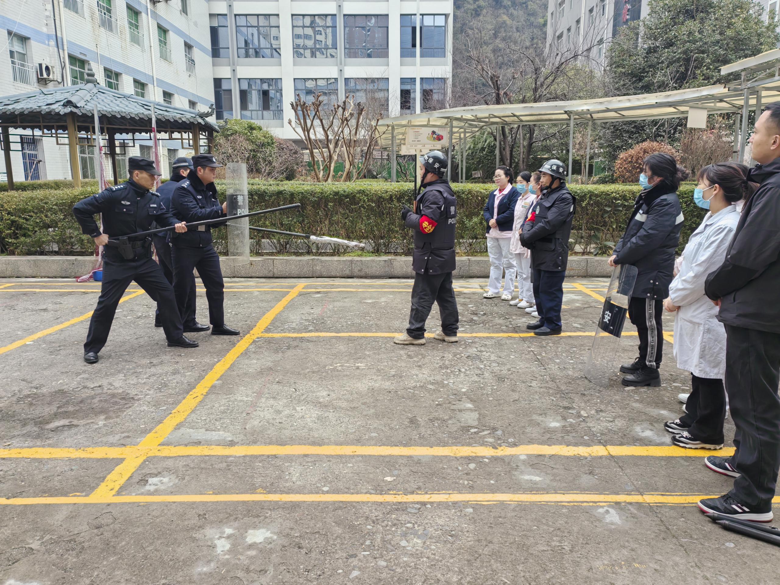 演练中,镇坪县公安局特警和辖区派出所警官对医院安保人员进行了系统的培训,包括防范器械的使用方法、战术站位、警戒方式以及处置技巧等。随后,模拟了突发紧急情况,如医患纠纷、暴力入侵、医闹持刀等场景,医院安保人员迅速响应,按照预定的战术站位和处置流程,有效利用防暴盾牌、防暴钢叉等防范器械,成功控制了事态发展,并在第一时间请求了支援。