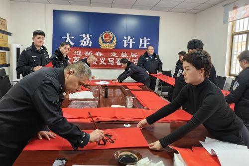新春佳节将至,为丰富警营文化生活,营造喜庆祥和的节日氛围。1月21、22日,大荔县公安局开展了“迎新春 走基层”义写对联活动,警营书法家们挥毫泼墨,向全体民辅警送上新春祝福,共同庆祝蛇年春节的到来。