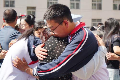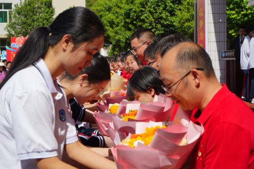 十八门礼炮,象征十八载青春年华。礼炮声中,家长为学生佩戴了由学校定制的成人勋章。他们向家长深深鞠躬表达着对父母倾情守护的感恩,向三年陪伴、默默奉献的恩师们送上鲜花,与三年朝夕相处的同伴拥抱致谢。全体学生庄严宣誓,誓言铿锵有力,彰显青春担当。