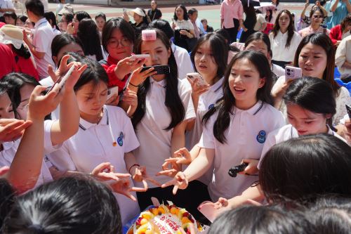 学校党支部书记、校长杨顺从青春记忆、青年责任与寄语未来三个方面做了致辞。他愿孩子们心存热爱、涵养坚韧品格、做一个纯粹的人,活成自己理想的喜欢的模样。高三教师也借诗朗诵为孩子们送上临别的叮咛与嘱托,学生代表们也献上了联唱歌曲。在声声励志歌曲中,各班也迎来了学校精心准备的寓意“得胜”的双层蛋糕,愿他们步步高升、前程似锦、金榜题名。