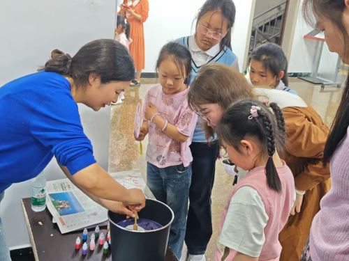 如果说读书分享是一场精神的洗礼,那么漆扇手工制作则是一场创意与传统的邂逅。工作人员详细介绍了漆扇悠久的历史文化传承,从东汉时期漆扇的雏形初现,到唐代的工艺鼎盛,再到如今传统与现代的创新融合,一段段故事让大家对漆扇的艺术价值有了全新的认识。在工作人员的指导下,小朋友们纷纷拿起画笔,与家长相互合作,在素扇上勾勒出心中的图案,创作出独一无二的作品。