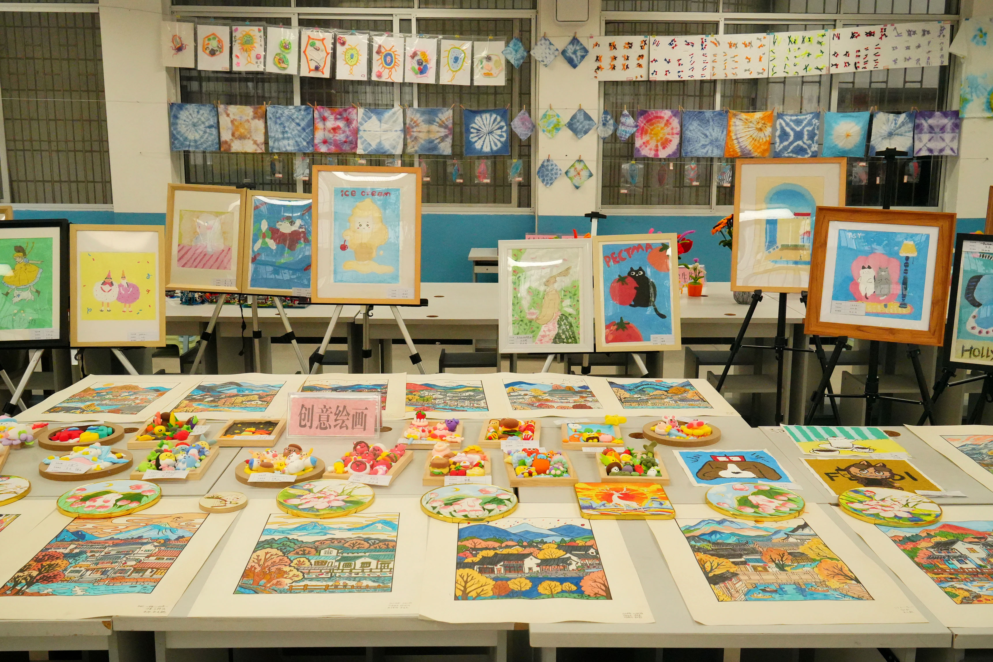 活动现场亮点频出,各社团以独特的创意与扎实的功底,勾勒出校园文化的绚丽图景。展示厅内,传统文化与现代艺术交织生辉:书法社团的学生挥毫泼墨,在横竖撇捺间传承千年文脉;创意美术社团的作品构思精巧,色彩斑斓,尽显艺术巧思;英韵社团借助多模态学习方式,将语言学习融入生活场景,生动演绎交流魅力。指尖生花、生命之窗、化龙学社等社团则以生活为灵感,用落叶、织物等自然素材创作拼贴画、手工艺品,甚至自制美妆用品,每一件作品都凝聚着学生的奇思妙想。心灵旅社与光影社团以影像为媒,分别呈现心理健康教育成果与摄影艺术魅力,展现学子发现美、传递美的细腻视角。艺术领域同样精彩纷呈,合唱社团歌声宛转悠扬,舞蹈社团舞步轻盈灵动,尽显青春艺术风采。运动场上,羽毛球、篮球社团成员身姿矫健,挥洒汗水,诠释着拼搏进取的体育精神,彰显出运动赋予青春的蓬勃力量。