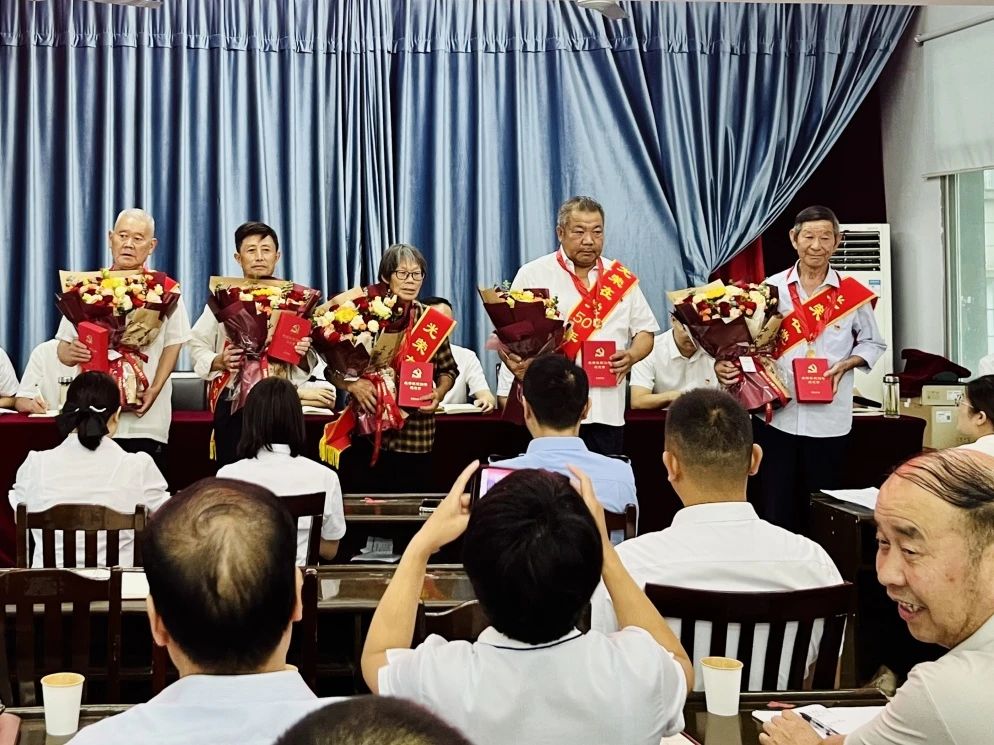 大会在庄严的国歌声中拉开帷幕,全体党员庄严肃立,齐声高唱国歌,激昂的旋律激发了党员们的爱国爱党情怀。会议组织学习了《习近平关于加强党的作风建设论述摘编》部分章节,为“光荣在党50年”的老党员举行了纪念章颁发仪式。全体党员面向鲜红的党旗,高举右拳,重温入党誓词,表达了党员们对党的无限忠诚,以及为党的事业奋斗终身的坚定决心。