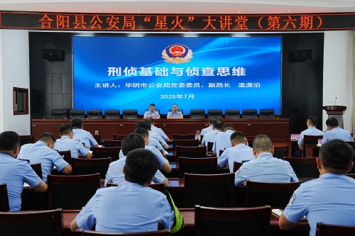 为进一步丰富培训内容,扩展民警知识面,增强培训效果, 7月14日下午,合阳县公安局组织第六期星火大讲堂,邀请华阴市公安局党委委员、副局长、省级教官温潇泊同志主讲,局党委委员、副局长张宏伟主持,领导班子成员、各所队长、县局教官和民警代表80余人参加讲座。