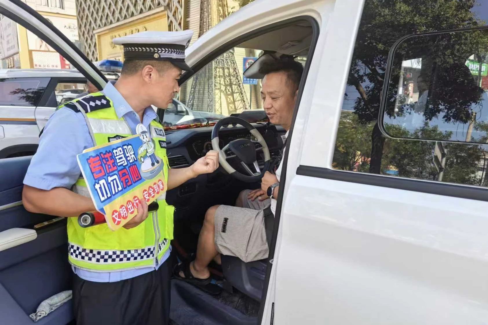 活动中,民警结合辖区道路形势,通过发放宣传彩页、讲解典型事故案例等方式,零距离与驾驶人及乘客交流互动,以通俗易懂的语言,深入剖析夏季交通安全注意事项,并详解超员、超速、酒驾醉驾、疲劳驾驶、不系安全带等交通违法行为的严重危害,引导大家暑期出行时刻绷紧安全弦,自觉系好安全带,摒弃交通陋习,做到安全文明出行。