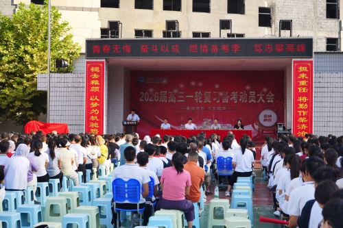 8月19日上午,镇坪县高级中学操场旌旗猎猎、誓言铿锵,2026届高三一轮复习备考动员大会在此隆重举行。学校领导、全体高三师生及家长代表齐聚一堂,共同吹响迎战高考的冲锋号。