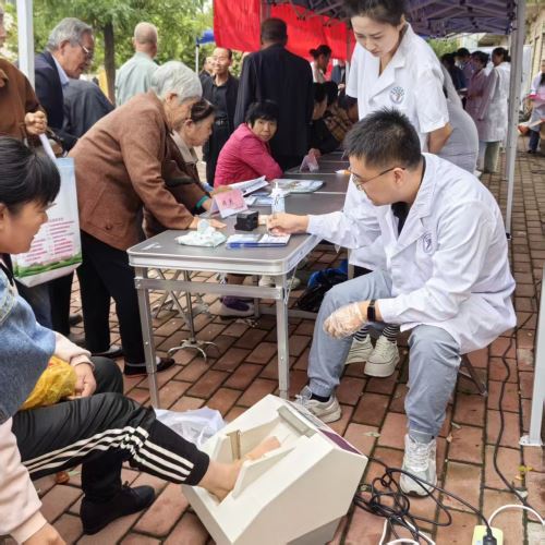 在检查服务区,免费基础检查项目有序开展,涵盖骨科关节活动度评估、骨密度检测(排查骨质疏松风险)、血压测量、血糖检测等,居民可以及时了解骨骼健康与基础代谢情况,实现潜在健康问题早发现、早干预,共为300余名居民完成检查。“以前想找红会医院专家看病,得提前好几天挂号,还得往西安跑,折腾好几天。现在专家直接到家门口,真是太方便了!”家住广阳镇的王大爷笑着说道。