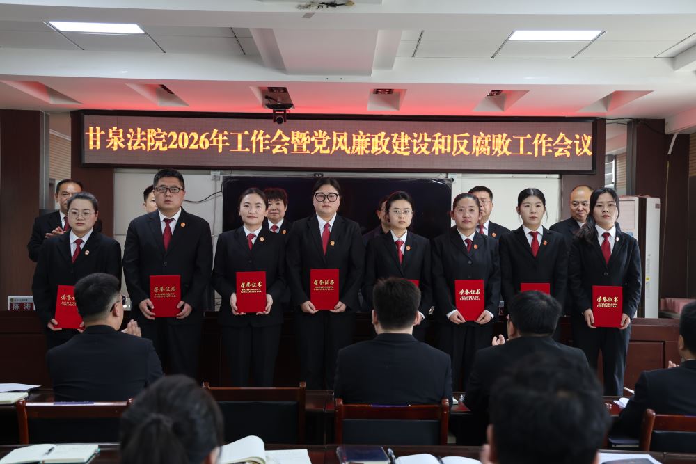 会议传达学习了习近平总书记对政法工作的指示批示精神、中省市县政法工作会议精神、全国全省全市法院工作会议精神,宣读了甘泉法院表彰决定。邱哲组长对甘泉法院党风廉政建设和反腐败工作提出了具体要求,孟晓宜全面回顾了甘泉法院2025年工作,并重点对2026年工作作动员部署讲话。